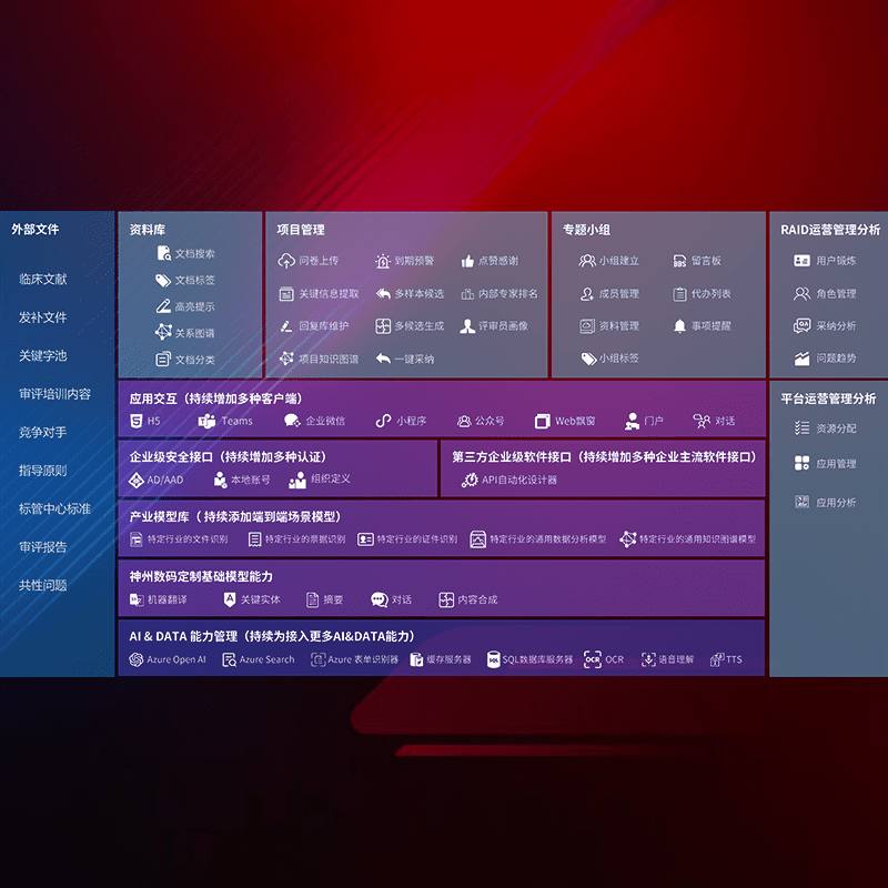 医疗器械产品上市前,,,,要熟悉严格与繁复评审标准,,,,整理分析监管机构指导文件中的海量信息。。企业急需一个智能化解决方案,,,提升知识管理效率,,,,提高评审通过率,,,以提升其市场竞争力。。。
